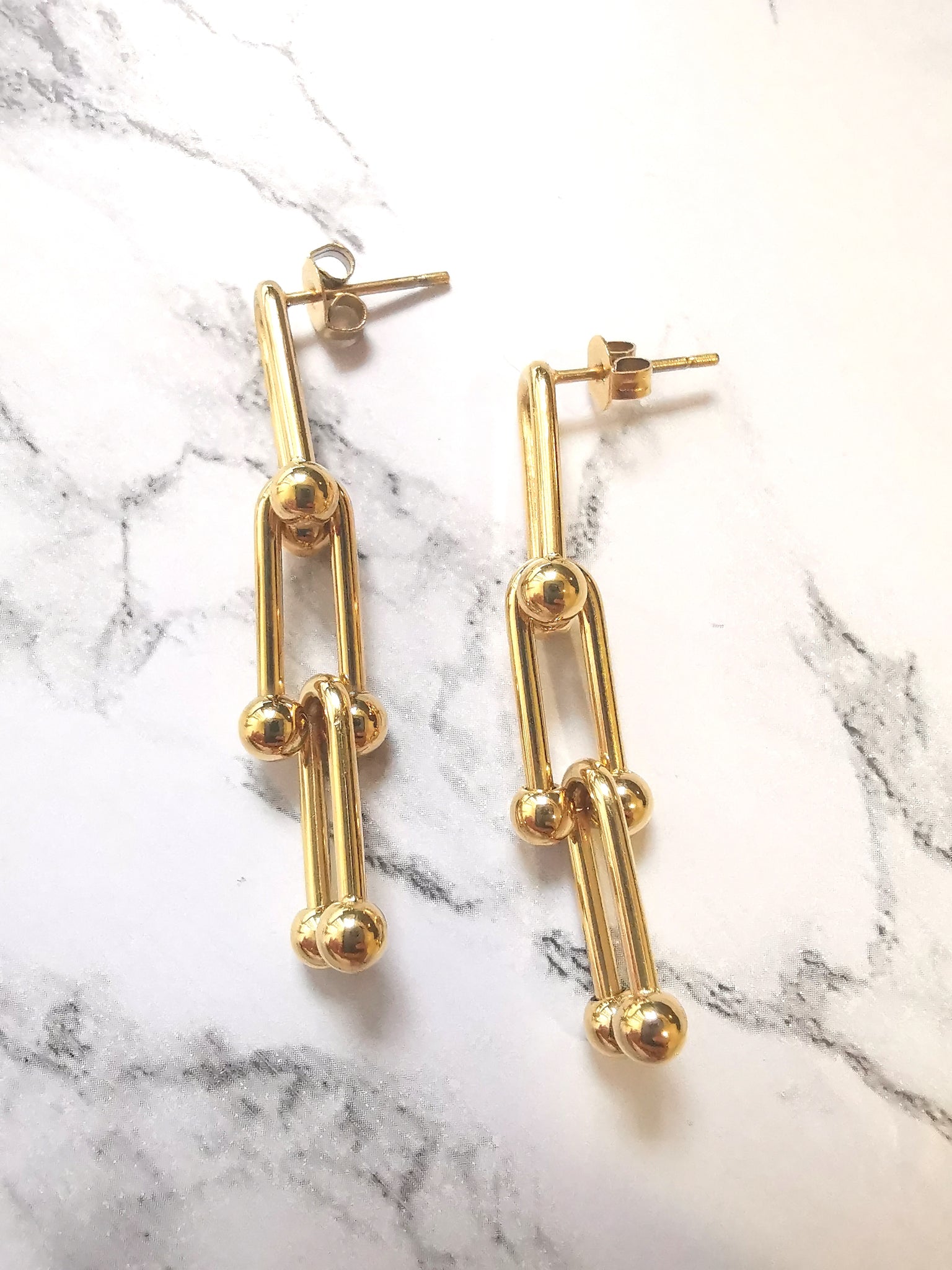 This earrings made of non-tarnish brass metal with simple modern designs.