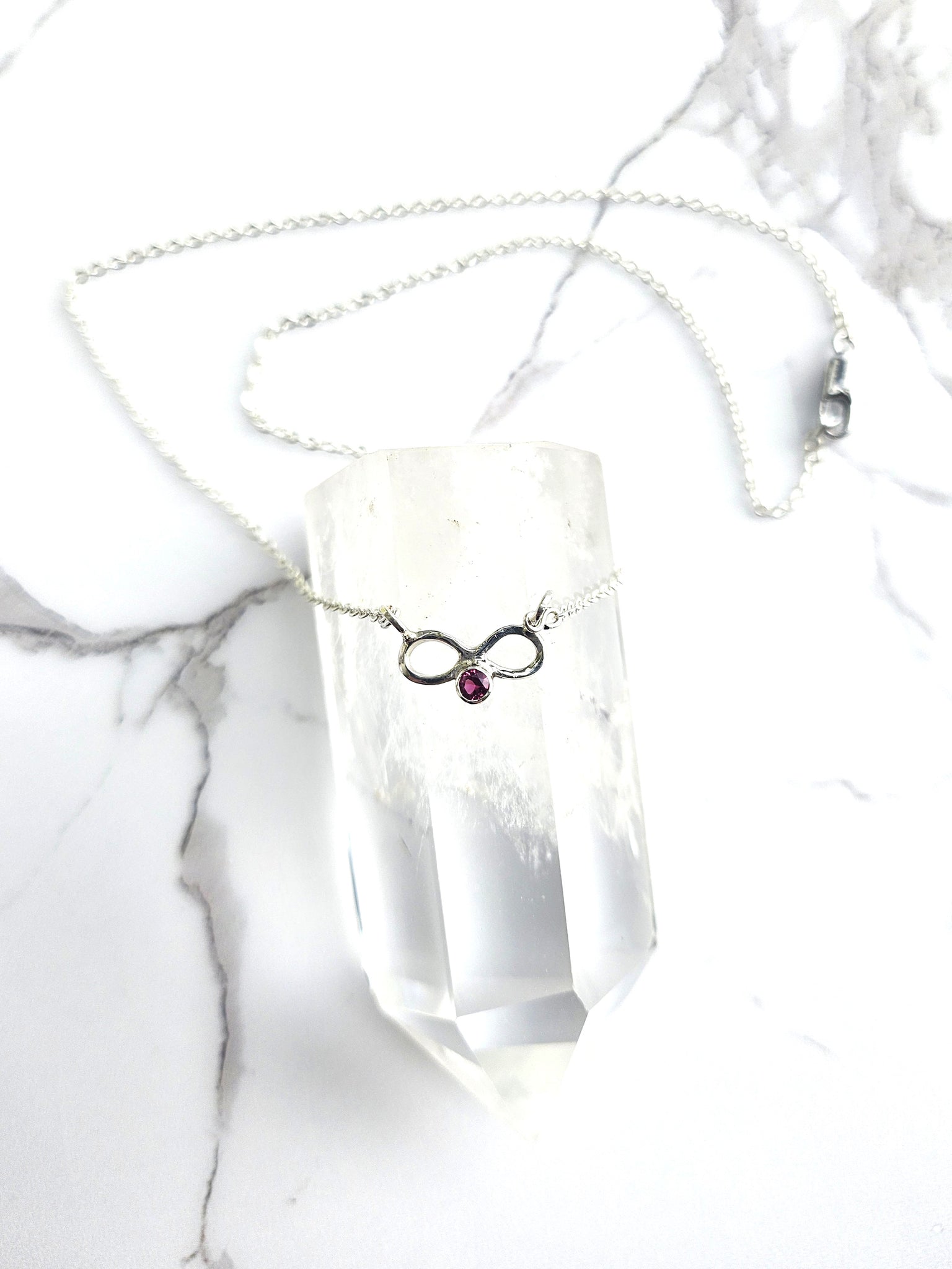 Crafted in sterling silver and polished to brilliance, the Infinité de Lumière Pendant carries the essence of the seed made of Preciosa maroon crystal that reaches for the sun, capturing the idea that light is infinite, and hope never fades.